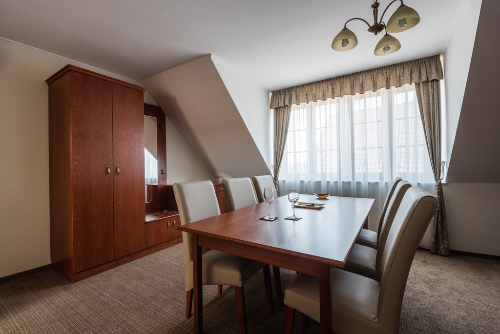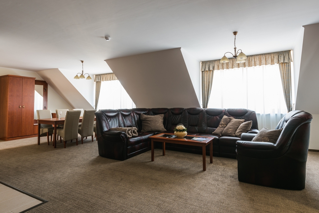 Each Deluxe Suite is equipped with comfortable new furniture, air conditioning, TV, broadband (WiFi), safe, mini bar, bathroom with massage bath and kitchen. The suites can be found in the Private Guesthaus section of Hotel Ermitage, 350 metres from the main building. The building has its own wellness facility.
